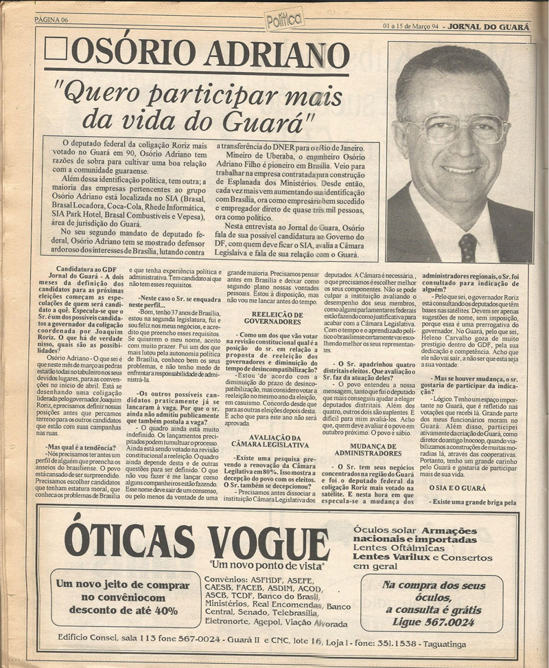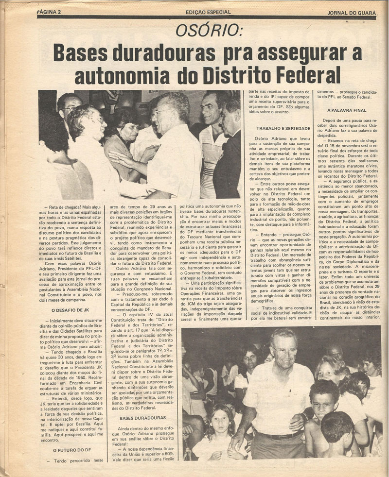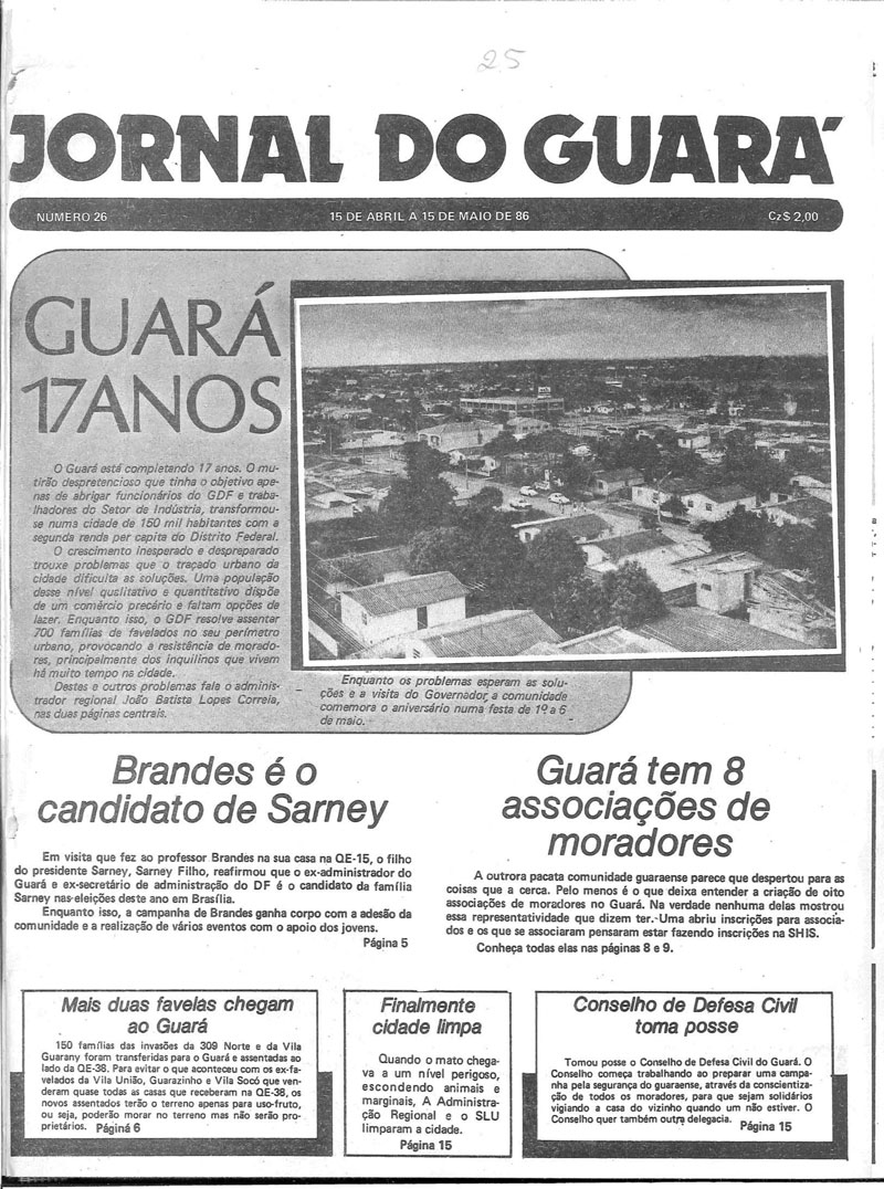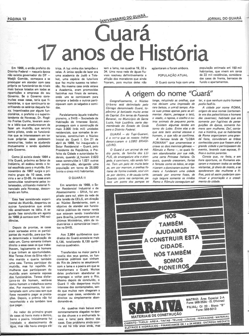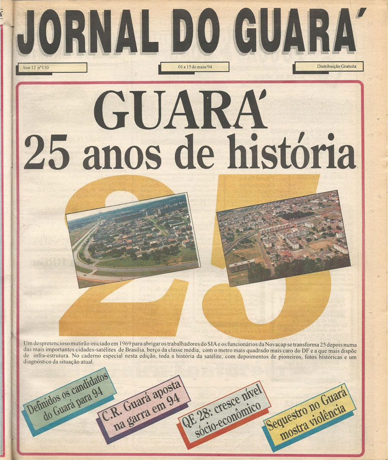 Entender a importância da história de uma cidade é vital para sua comunidade. Foi com base nesse pressuposto que os responsáveis pelo Jornal do Guará se empenharam para colocar à disposição dos seus leitores mais de 900 edições digitalizadas do Jornal do Guará, o periódico mais antigo do Distrito Federal, fundado em março de 1983.