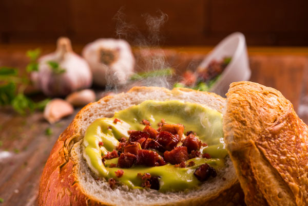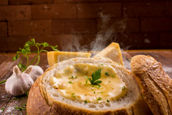- Sopas são servidas no pão italiano