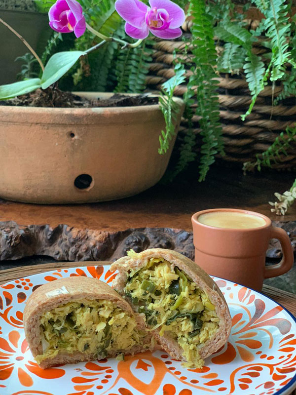 Salgado maromba de frango com alho poró