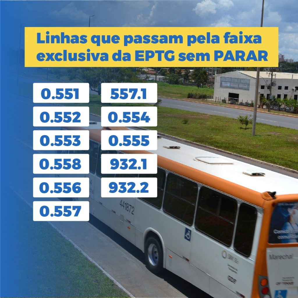 Existem, ainda, 57 linhas que não passam pela faixa exclusiva, de forma que os passageiros que as utilizam têm que desembarcar ou embarcar nos abrigos que estão nas marginais da via. Esses ônibus saem de Taguatinga, Ceilândia e Brazlândia e possuem como destino, principalmente, regiões que estão à margem da EPTG, a exemplo de Vicente Pires e Guará.