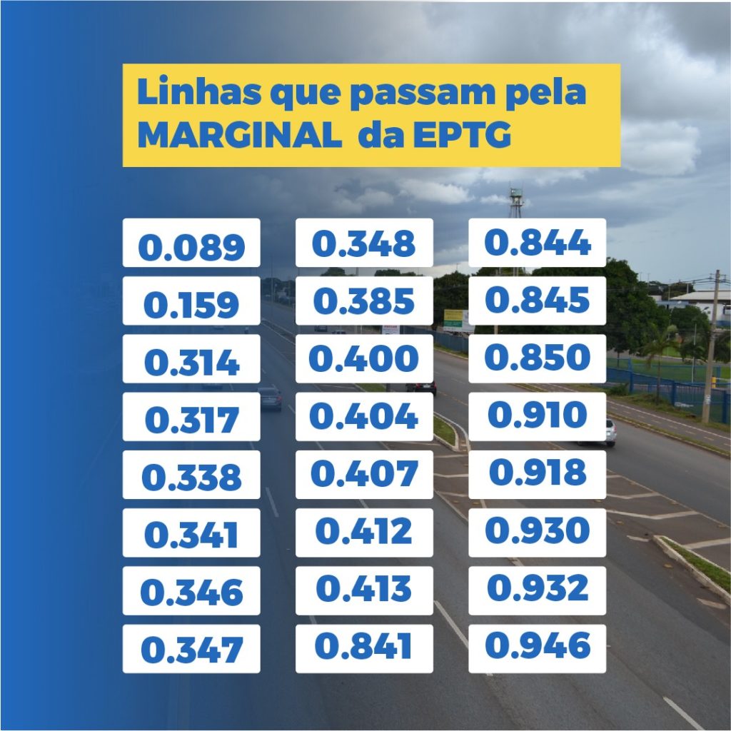 Os passageiros que utilizam os ônibus que passam pela Estrada Parque Taguatinga (EPTG) devem ficar atentos para saber onde passa cada uma das 98 linhas que trafegam pela via. São 30 linhas que passam pela faixa exclusiva e atendem os passageiros que precisam desembarcar ou embarcar nos 30 abrigos (15 em cada sentido) que estão no canteiro central.