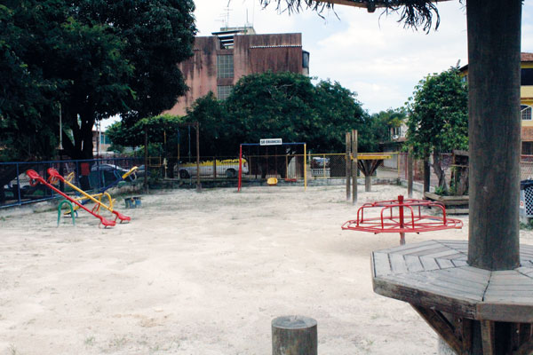 A praça tem sido moldada aos poucos, artesanalmente. O próprio Primo, com a ajuda e apoio de cerca de 30 moradores, constrói as melhorias. “Com as doações, com o trabalho braçal dos próprios moradores, temos reconstruído a praça. O governo, em especial a Administração do Guará, é um grande parceiro, ao fornecer material e mão-de-obra ao nosso projeto”, explica. Neste momento, os moradores estão construindo bancos de concreto com toras de ipê. Por conta deste processo comunitário de construção, a praça tem uma personalidade muito peculiar. “Os parquinhos que vemos em todas as praças são apenas bancos de areia e brinquedos de ferro. Acreditamos que nossas crianças não devem ser tratadas como cachorros e colocadas em canis. Nosso parquinho tem mesas e cadeiras para os pais acompanharem os filhos, tem jardins, brinquedos seguros e feitos pelos próprios moradores”, completa Primo. Esta forma humanizada de pensar os equipamentos públicos permeia todos os cantos da praça. Os pergolados fornecem sombra, e em cada espaço há um pouco do esforço de todos que convivem ali. Em um pergolado sobre uma mesinha, uma caixa de som toda música durante o dia todo e serve também para os anúncios da comunidade.