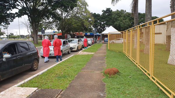 O teste no drive-thru é realizado de segunda a sexta-feira, exceto feriados, das 8h às 17h. É exclusivo para pessoas sintomáticas ou que tenham histórico de contato com algum caso confirmado e residam com idosos, e que moram nas regiões administrativas abrangidas pelo local onde o posto está montado.