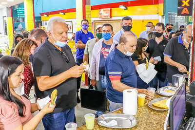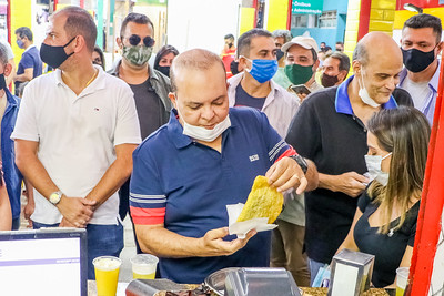 Bem à vontade, comeu um pastel de carne com suco de abacaxi e hortelã ao lado do vice-governador, Paco Britto. Os dois foram acompanhados pelo secretário de Governo, José Humberto, e pelo deputado Delmasso.
