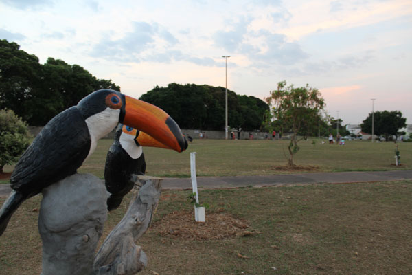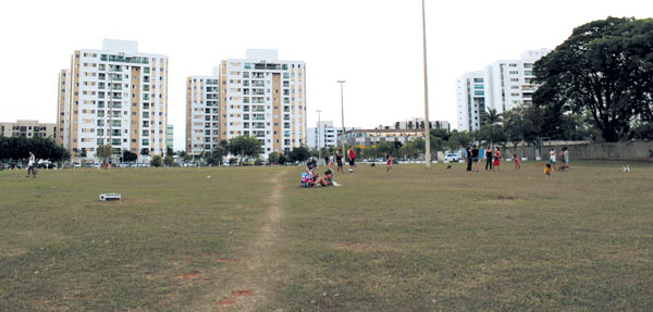 Os gêmeos Matheus e Luiza, filhos de Camila Rangel, são presença garantida na área verde. Com a pandemia, os moradores da QI 29, encontraram ao lado do Centrão um local para divertir-se ao ar livre. As árvores bem cuidadas, as mudas protegidas, o mato retirado e canteiros feitos com garrafas vazias mostram o cainho dos moradores com o espaço.