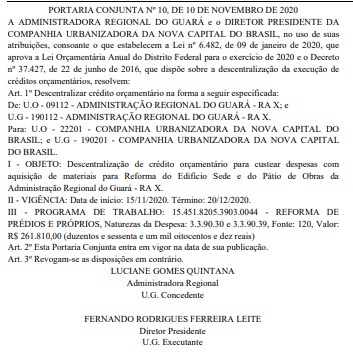 A Administração tem a prerrogativa de elaborar o projeto e licitar a obra. Mas, o órgão não realiza uma única licitação há vários anos. Nem mesmo uma Comissão de Licitação dispõe mais, por falta de pessoal qualificado para as funções exigidas. A saída encontrada é descentralizar (ou enviar) os recursos à Novacap ou para outra secretaria de Estado para que execute as obras ou serviços. Em 2020, os R$ 266 mil foram enviados à Novacap apenas no dia 10 de novembro, quando não havia tempo hábil para realizar uma licitação, já que o recurso não pode ser executado no período posterior. Por isso o recurso foi devolvido.