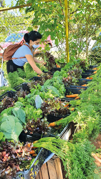 A cada 15 dias é feita a colheita, sempre nas manhãs de sábado. Em média, cada encontro semanal resulta na entrega de 25 a 30 cestas, compostas de diferentes produtos. São cerca de 170 voluntários, mas a média de presença nos encontros varia de 40 a 50. O sistema é simples: para colher, é preciso plantar. Por isso, há um cadastro de voluntários responsáveis pelos cuidados com a horta.