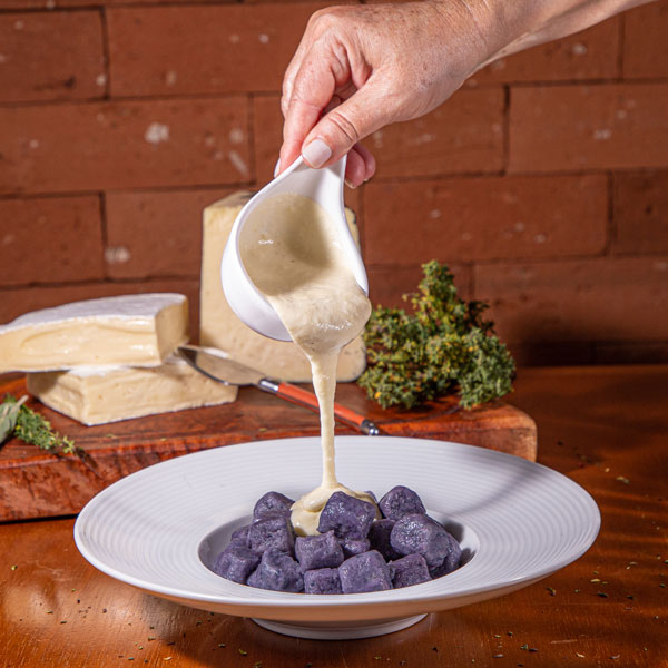 - Gnocchi de batata roxa ao molho de fonduta de queijo brie