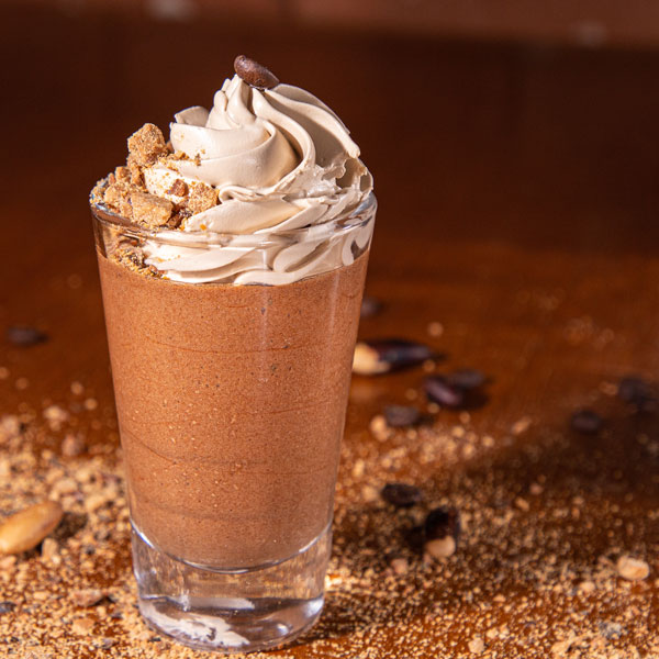 - Semifredo de chocolate com café do cerrado , chantilly de doce de leite e farofa de castanha de baru