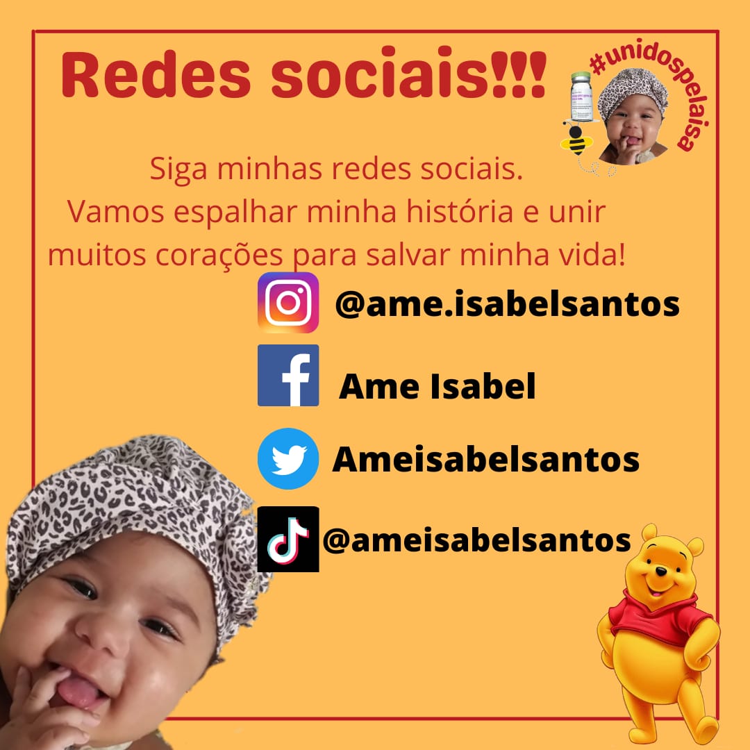 Após o primeiro diagnóstico inconclusivo da doença, que saiu no dia 8 de janeiro deste ano, o Hospital da Criança confirmou que a Isabel é portadora de AME em 12 de fevereiro. “Ficamos bastante abalados com a notícia, mas temos fé de que conseguiremos esse remédio tão caro, principalmente com a ajuda de tantas pessoas que estão abraçando a causa”, ressalta a mãe.