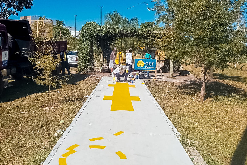 Localizado no Polo de Modas, o Parque Denner agora pode receber as crianças com mais diversão. Reeducandos do projeto Mãos Dadas, da Secretaria de Administração Penitenciária (Seape), pintaram um circuito infantil na calçada de acesso ao parquinho. O pergolado teve suas folhagens aparadas e a área verde foi toda limpa.