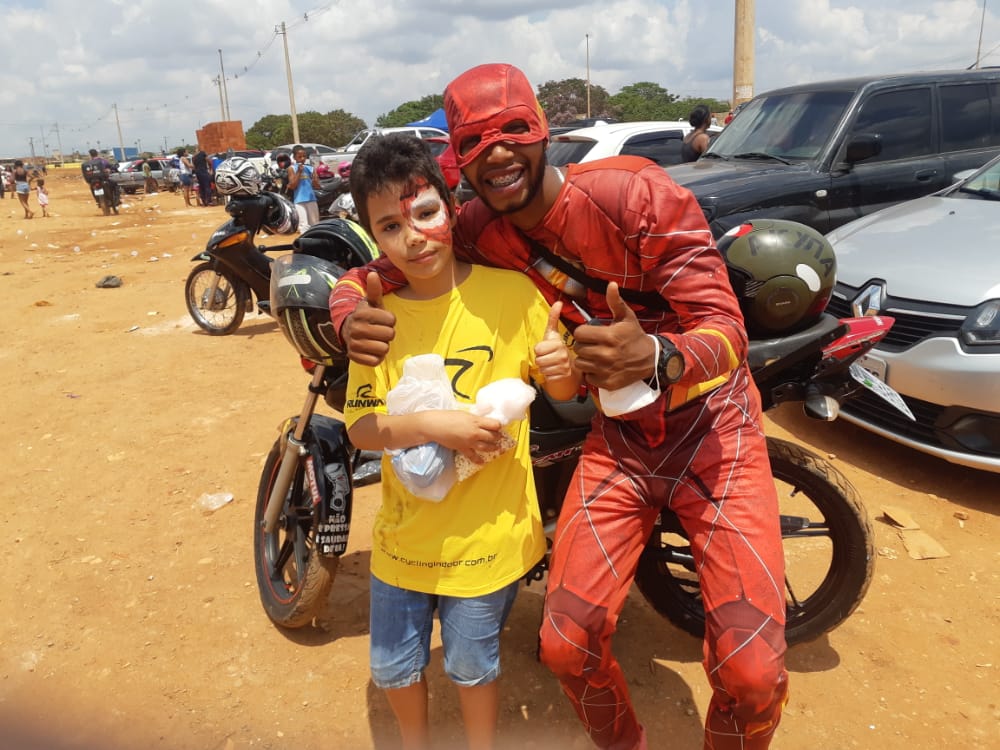 O grupo de motoqueiros do Guará Bololô G2 realizou mais um ato de solidariedade no dia das crianças. Dezenas de motos chegaram à comunidade Santa Luiza, na Cidade Estrutural, com mais de mil brinquedos, além de doces, pipoca, lanche e serviços para as crianças, como corte de cabelo e pintura de rosto. Todos os itens foram arrecadados entre empresários e a comunidade do Guará, base do grupo.