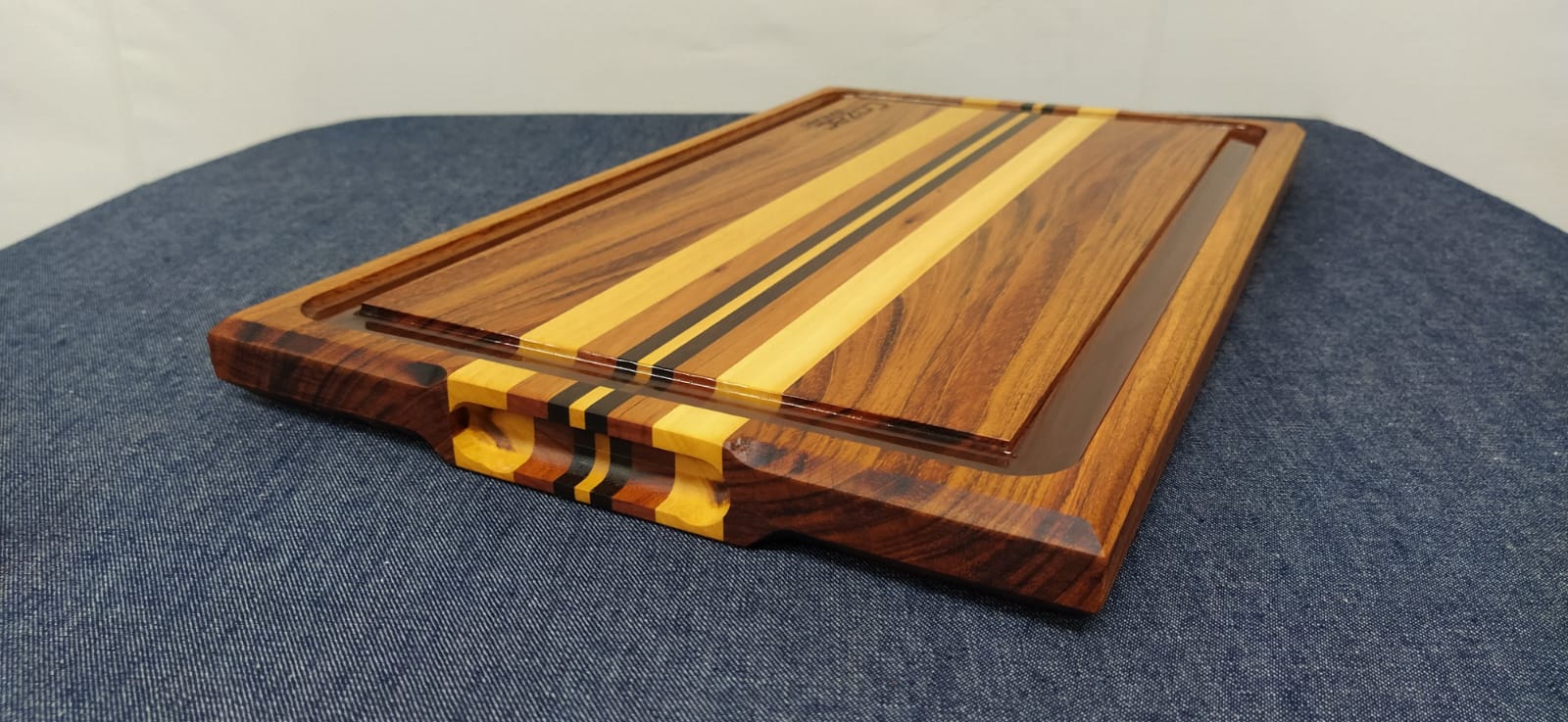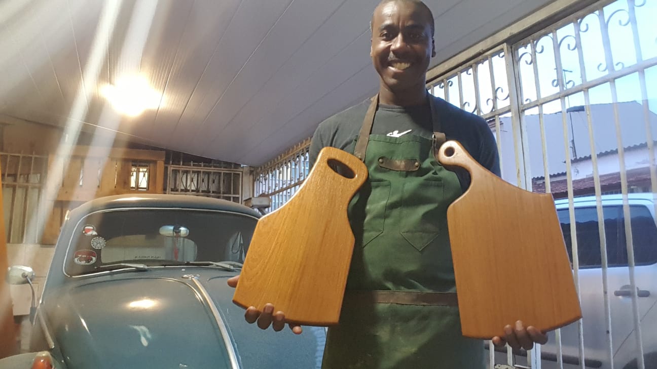 “Costumo produzir peças criativas e exclusivas. Ultimamente Tenho trabalhado em peças modernas e de design procurando incorporar novas técnicas e novos matérias, acrílico, vidro, metais e outros”, explica o artista. O acabamento de suas peças realmente salta os olhos. As tábuas de corte, em especial, são tão bem-acabadas que se tornam objetos de decoração e dificilmente serão guardadas em um armário.