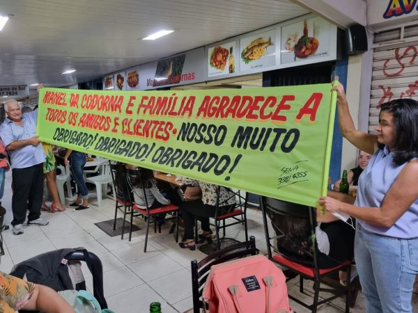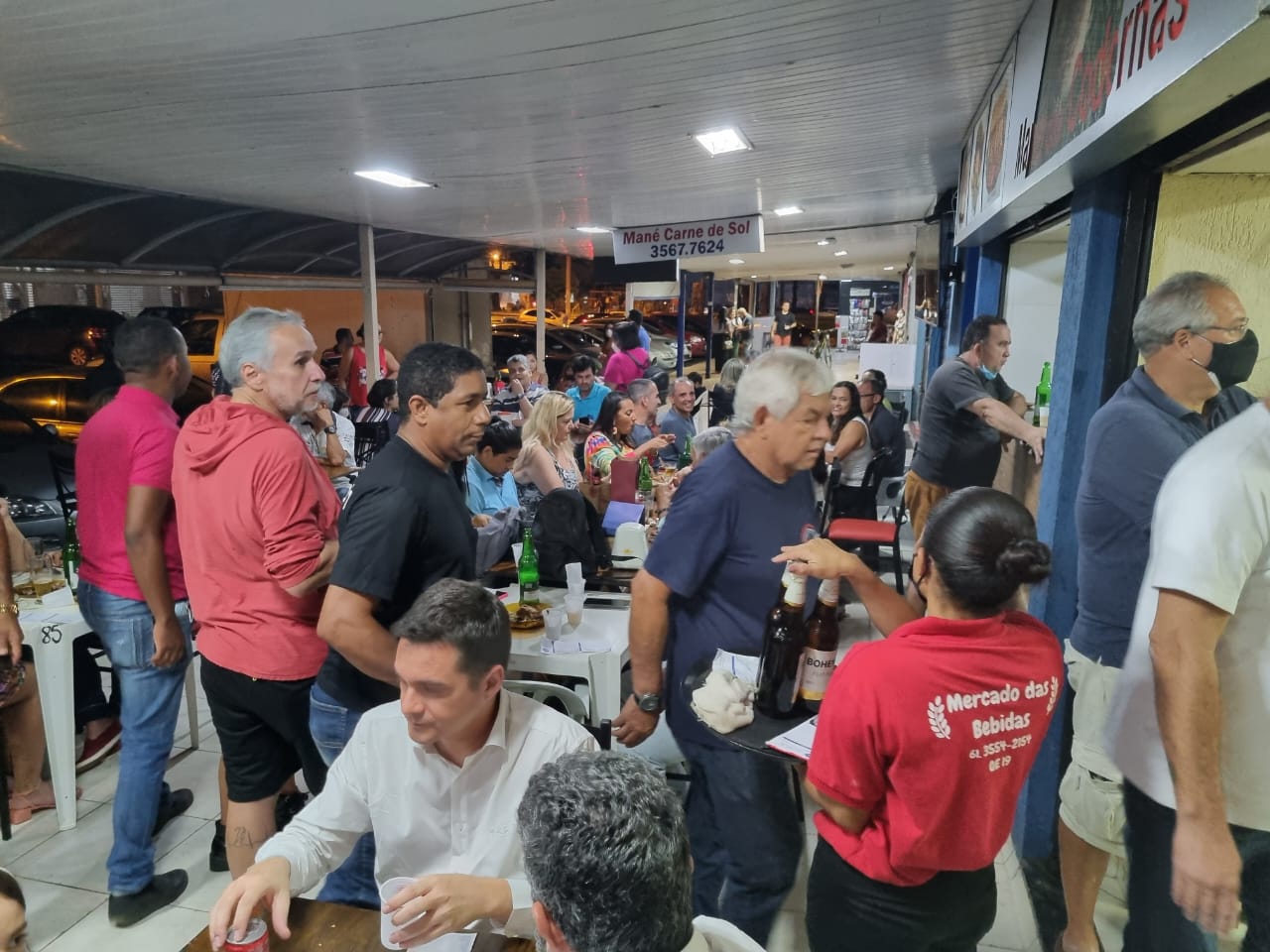 Com todos os lugares ocupados, muitos ficaram em pé ou passaram por lá para dar seu abraço ao Manoel dos Santos Freire, o Mané, que resolveu aposentar-se depois de 31 anos do Bar do Mané e 51 anos de atividades em bar e restaurante.