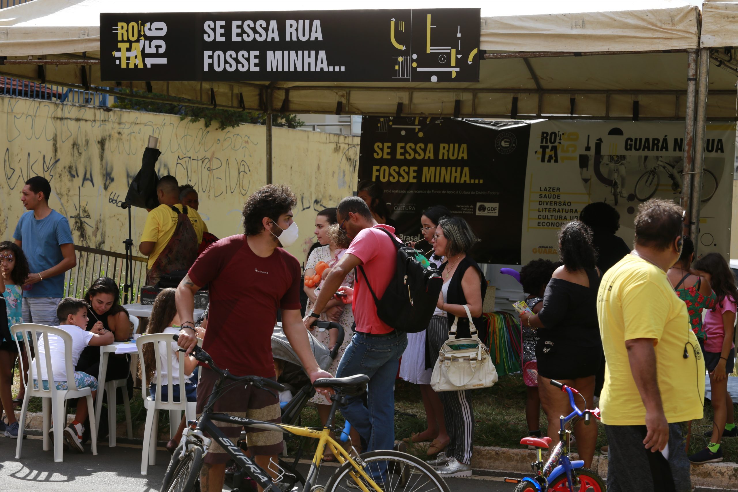 Esta foi a edição especial da Rota 156: Guará na Rua, organizada pelo Coletivo 156 desde 2015, que deu origem à lei que indica a realização de ruas do lazer em todas as cidades do Distrito Federal. Logo na entrada do trecho fechado ao trânsito, na QI 25, o SESC recebia a comunidade com um kart movido a pedal para as crianças. No terreno ao lado, onde aconteceriam os shows à noite, durante todo o dia artesãos e pequenos empreendedores do Guará expunham seus produtos. Mais à frente, brincadeiras, brinquedos infláveis, pintura de rosto, oficinas e contação de histórias na tenda, sempre lotada, Se Essa Rua Fosse Minha. A estação voltada para as crianças era a mais concorrida.