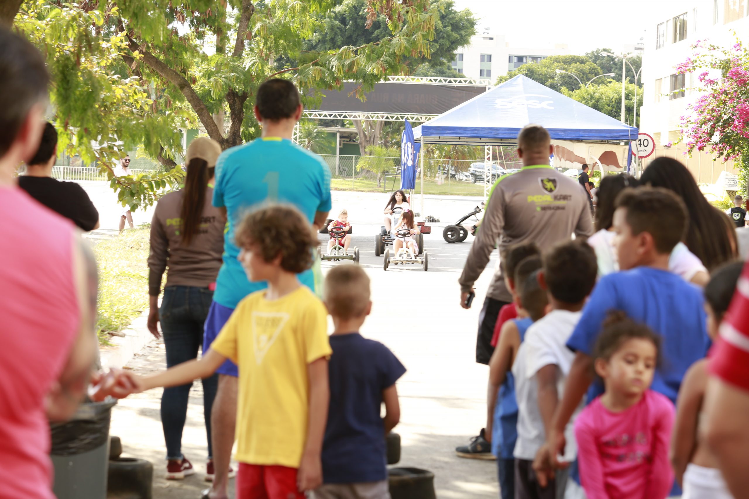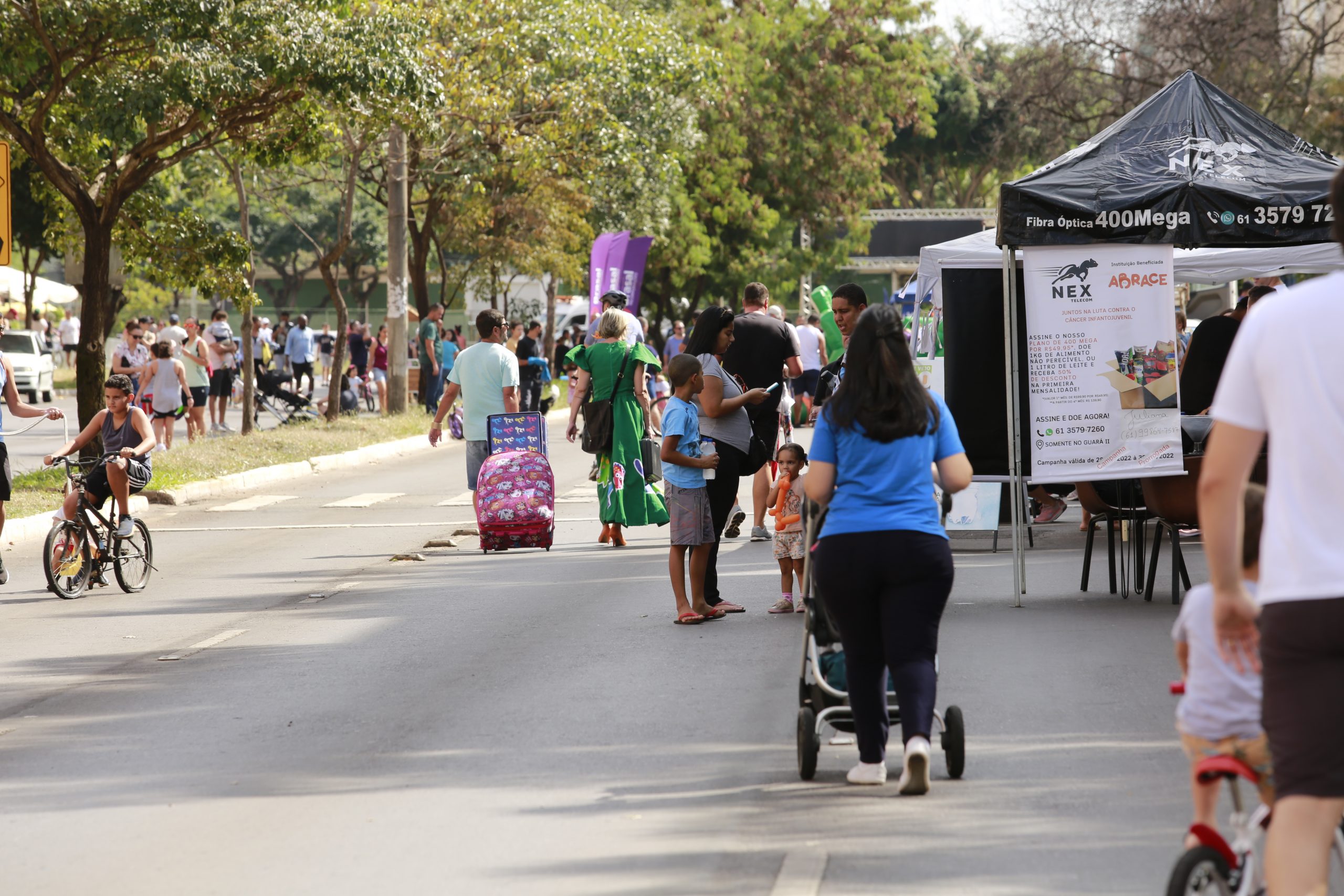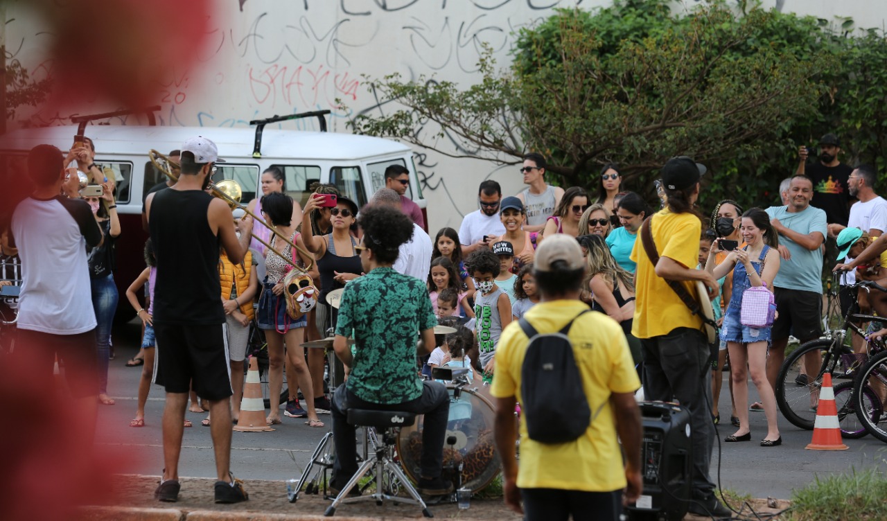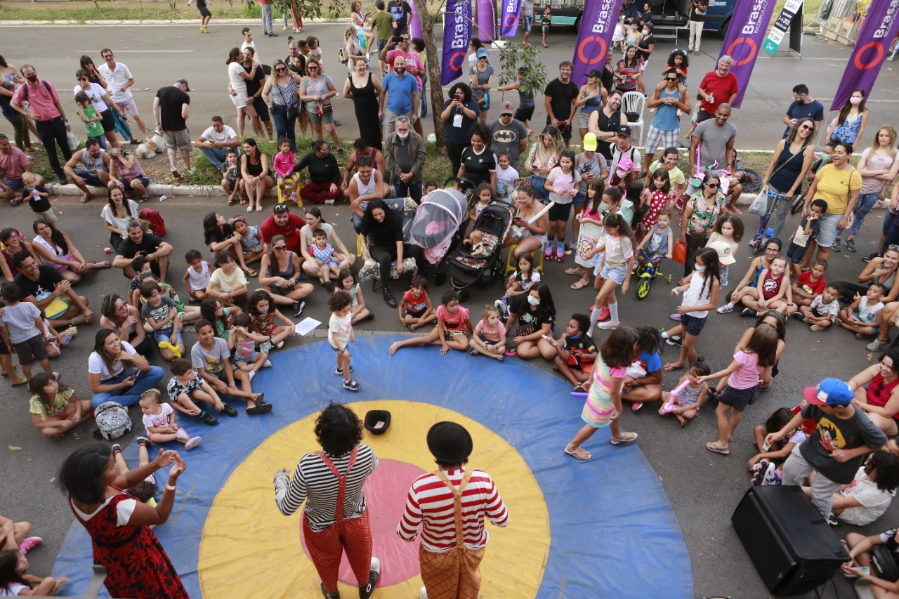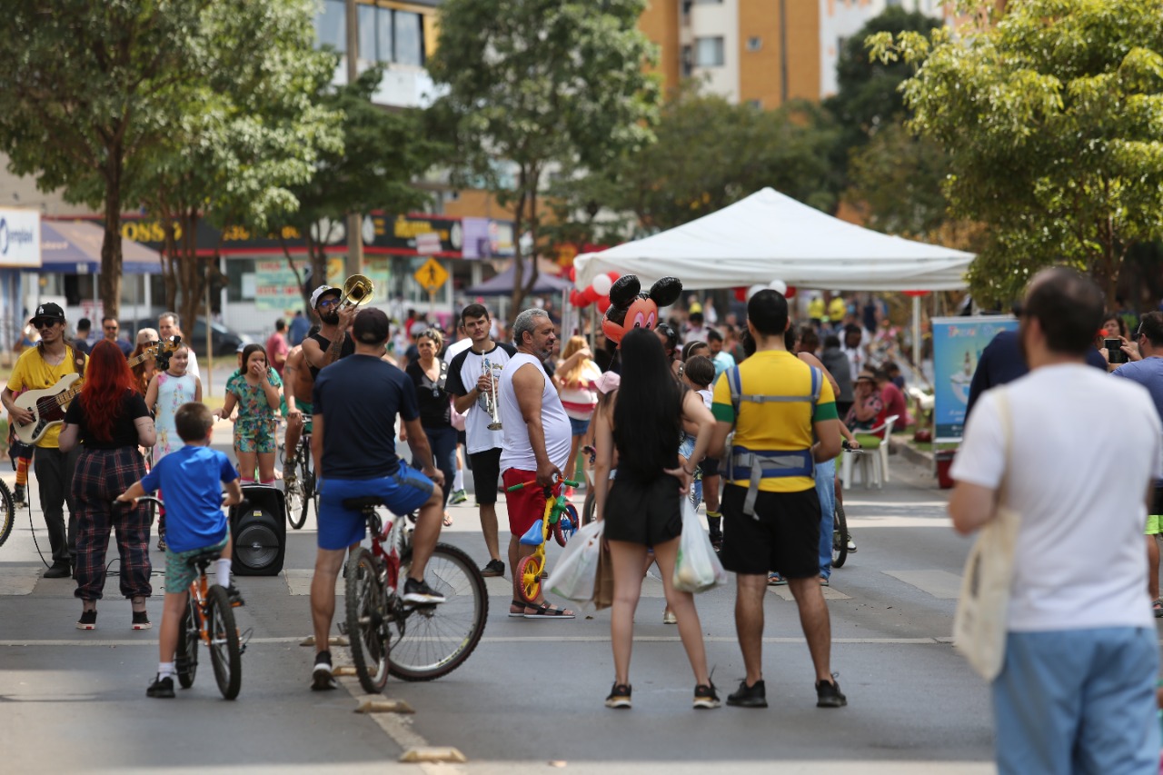As famílias chegavam de todos os cantos. Boa parte dos prédios que margeiam a avenida, mas muitos de longe, mesmo de outras cidades do Distrito Federal. Crianças com bicicletas, skates patinetes, gente correndo logo cedo, e casais passeando. A cada trecho da avenida, uma atração diferente reunia o público em volta. Todas as gerações reunidas em centenas de atividades diferentes. Sem os carros e ônibus, a avenida central do Guará II transformou-se em um parque urbano temporário. Um encontro que culminou em um bonito show durante a noite, na ponta do trecho fechado aos carros, em frente à 4ª Delegacia de Polícia.