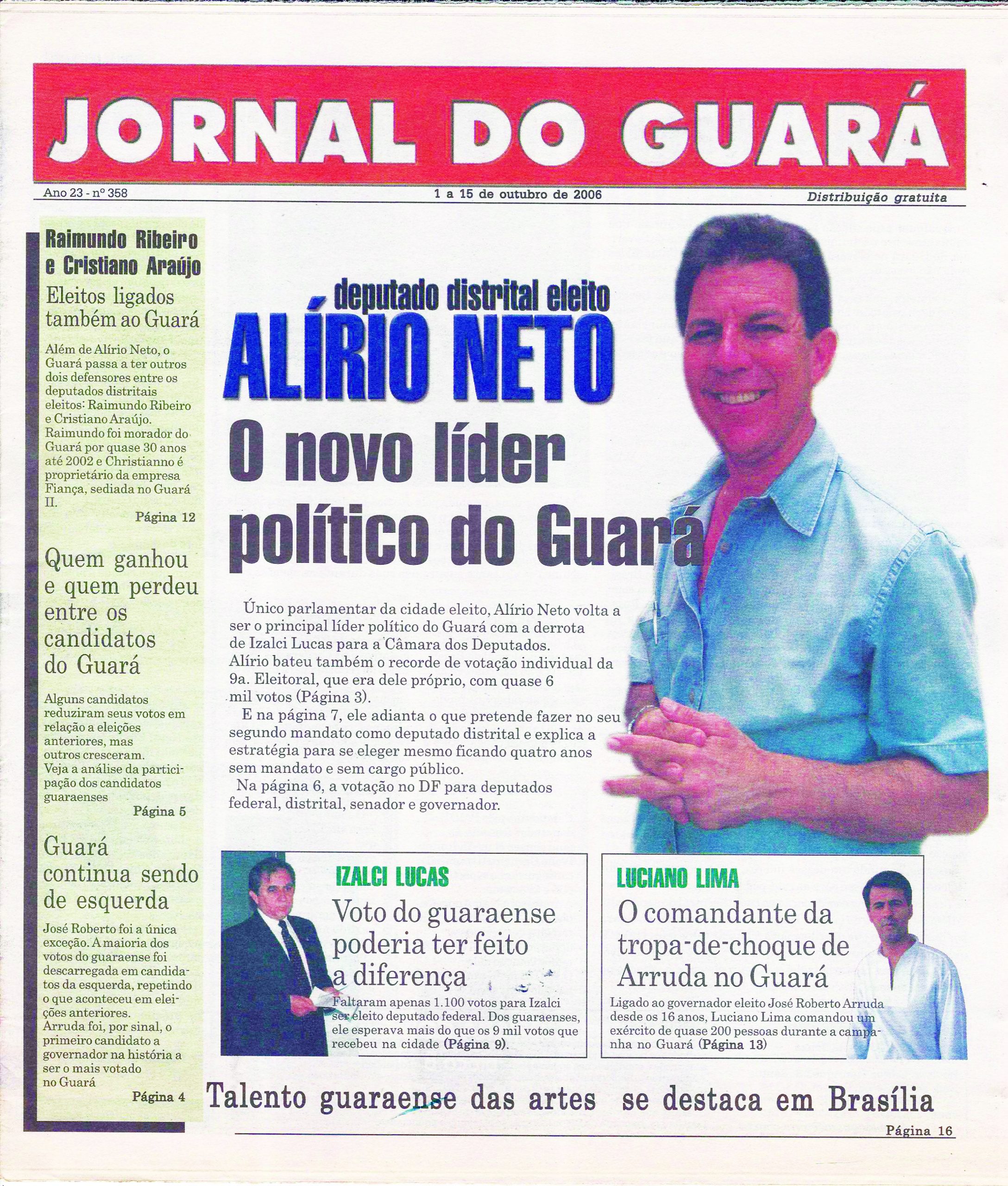 A partir de 2006, a tendência esquerdista começou a perder força entre o eleitorado guaraense, mas ainda muito pouco. Lula, que concorria à Presidência da República com Geraldo Alkmim, teve mais de 46 mil votos (48%) dos votos guaraenses, contra 40 mil (41%) do ex-governador paulista. A esquerda foi a preferida também para o Senado, com Agnelo Queiroz (50,5% dos votos), contra Joaquim Roriz (com 43,2% dos votos guaraenses), mas perdeu espaço para a votação à Câmara dos Deputados, em que Izalci Lucas, do PFL, alcançou 9.281 votos do morador da cidade, contra o segunzzzzzzdo colocado, da esquerda, Augusto Carvalho (PPS), até então o recordista de voto no Guará, que obteve 7.573 votos aqui. A derrota da esquerda foi maior entre as candidaturas ao Senado, com mais de 36 mil votos (44%) dados a Arruda, contra 21 mil (25%) a Maria de Lourdes Abadia e 20 mil a Arlete Sampaio (24%). Para deputado distrital, Alírio foi o preferido do morador do Guará, com 5.968 votos, o recorde da 9ª Zona Eleitoral, não por ser de esquerda, mas por ter sido administrador regional com a melhor avaliação até então e pelas expressivas votações anteriores. Depois dele, Paulo Tadeu, do PT, recebeu 2.248 votos, e Chico Leite, também do PT, 2.097 votos na cidade.