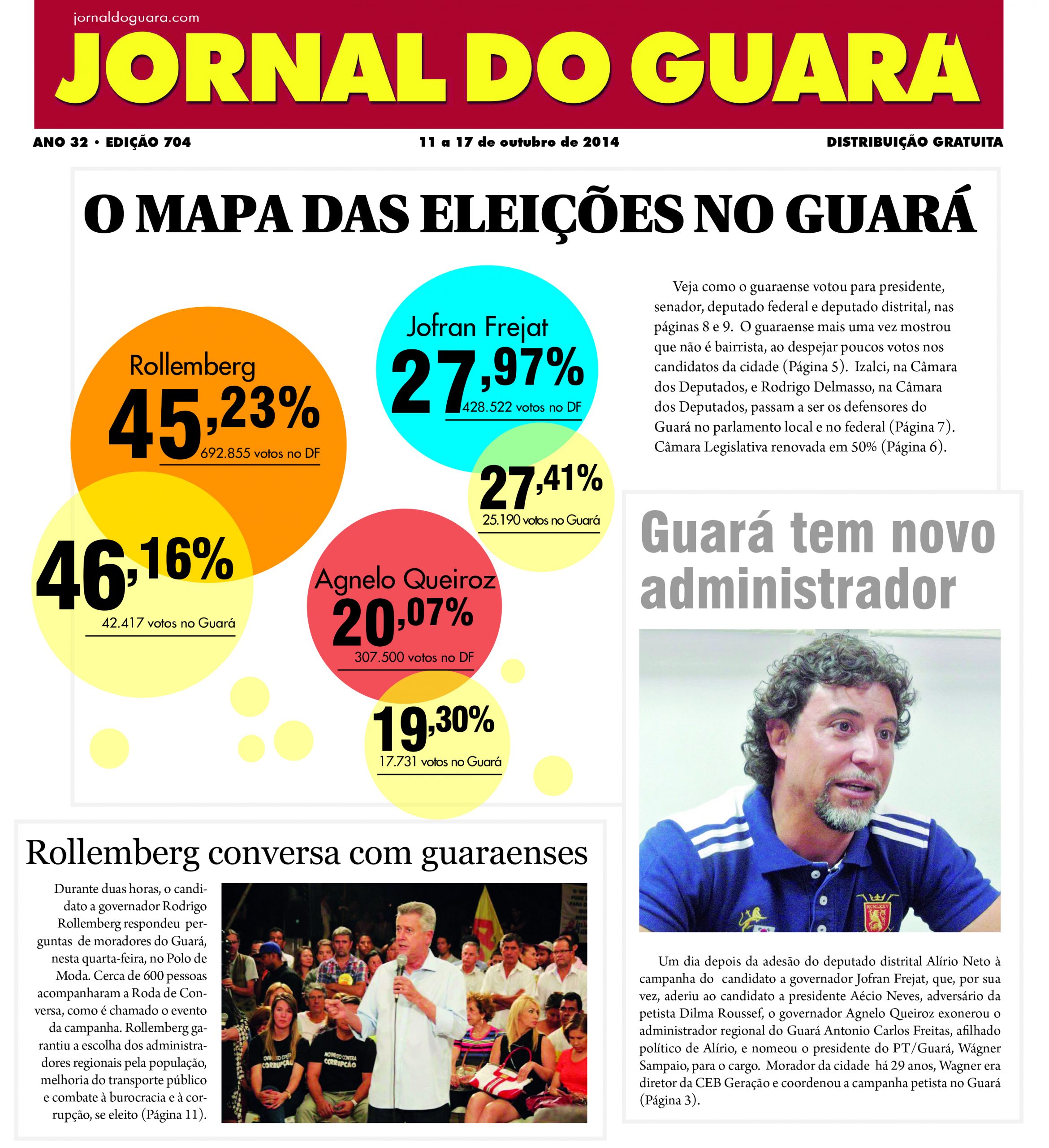 Em 2014, a esquerda voltou a apresentar supremacia no Guará, quando Rodrigo Rollemberg alcançou 46% (42 mil votos) contra 28% de Jofran Frejat (25 mil votos) e Agnelo Queiroz, do PT, com 17 mil votos (19%) dos votos guaraenses para o Governo do DF. Para o Senado, Reguffe, que circula entre a esquerda e o centro, obteve no Guará a maior média de votos (59,75%) de sua campanha, que teve média de 57,61% em todo o DF. Depois dele, o guaraense destinou 18,9% dos votos a Gim Argelo, e 16,65 % a Geraldo Magela. Gim, neste caso, quebrou em parte essa tendência esquerdista do guaraense. Como era esperado, o morador do Guará preferiu votar mais na esquerda para a presidência da República, destinando 42% (43 mil votos) a Dilma Roussef, depois 35,4% a Marina Silva (33 mil votos) e 33% a Aécio Neves (31 mil votos). Já para deputado federal e deputado distrital, a votação do guaraense foi mais centrada no defesa da cidade do que na ideologia partidária, principalmente em Rodrigo Delmasso, único deputado distrital guaraense eleito, e Alírio Neto e Izalci Lucas para a Câmara dos Deputados – Alírio, então no PEN, perdeu para o quociente eleitoral, mas Izalci, do PSDB, foi eleito. Alírio recebeu 14,4 mil votos no Guará dos 79 mil em todo o DF, seguido de Izalci com 6,3 mil dos 71 mil no total, depois Policarpo do PT e morador da cidade, com 4,3 mil dos 48 mil em todo o DF.