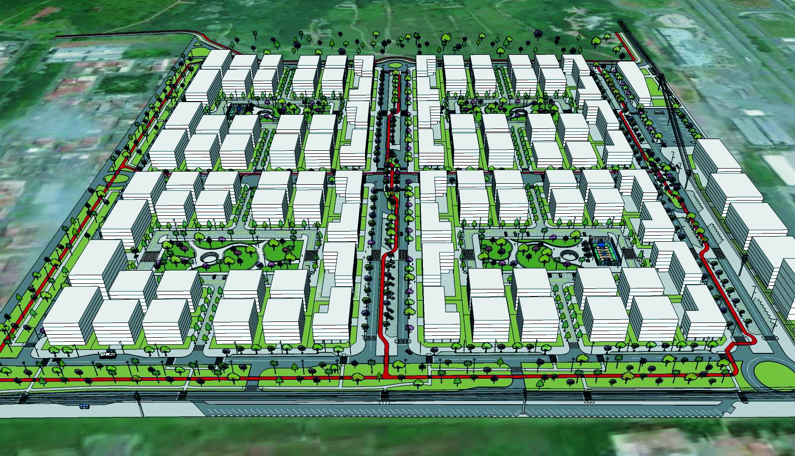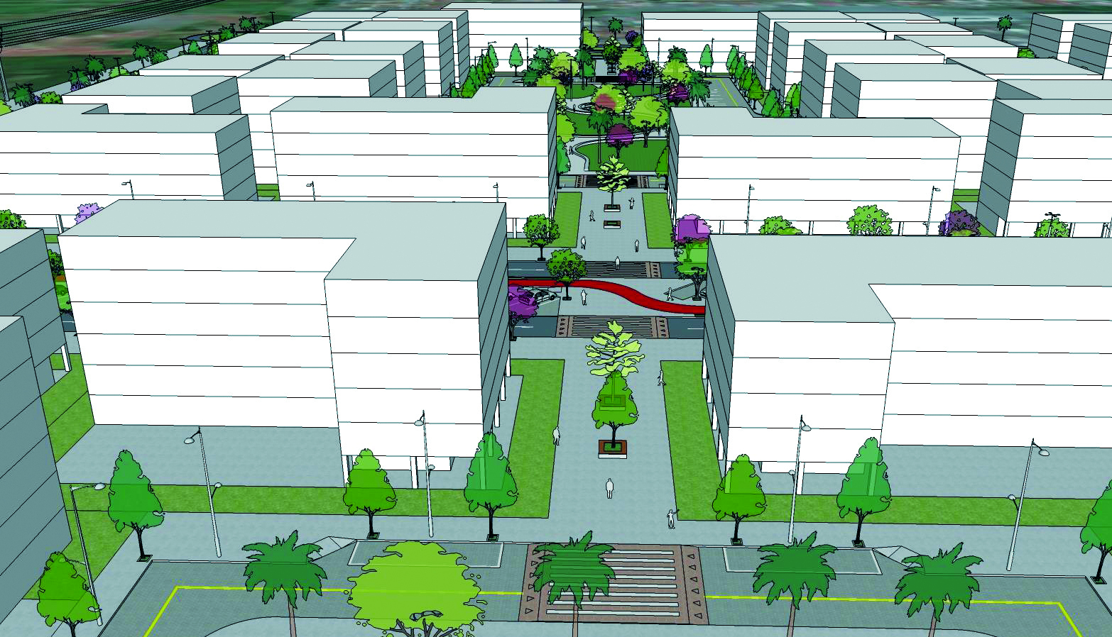 O projeto prevê duas avenidas comerciais, onde se concentrará o comércio da quadra, permitindo que os moradores acessem os serviços a pé. De acordo com a Terracap, “a proposta é integrar novas unidades residenciais a uma variedade de comércio, serviços e opções de lazer, promovendo a vitalidade urbana. Esse tipo de empreendimento é projetado para atender às necessidades dos seus moradores, privilegiando os deslocamentos sem o uso de veículos automotores”. Os lotes de uso residencial vão ficar a menos de 200 metros de uma praça, ou seja, os moradores terão uma área pública a no máximo três minutos de caminhada. As estratégias de sustentabilidade ambiental incluem uma rede de ciclovias conectadas e a existência de calçadas largas e arborizadas, que privilegiam pedestres e ciclistas e desestimulam o uso de carros, reduzindo a poluição atmosférica e a emissão de gases de efeito estufa.
