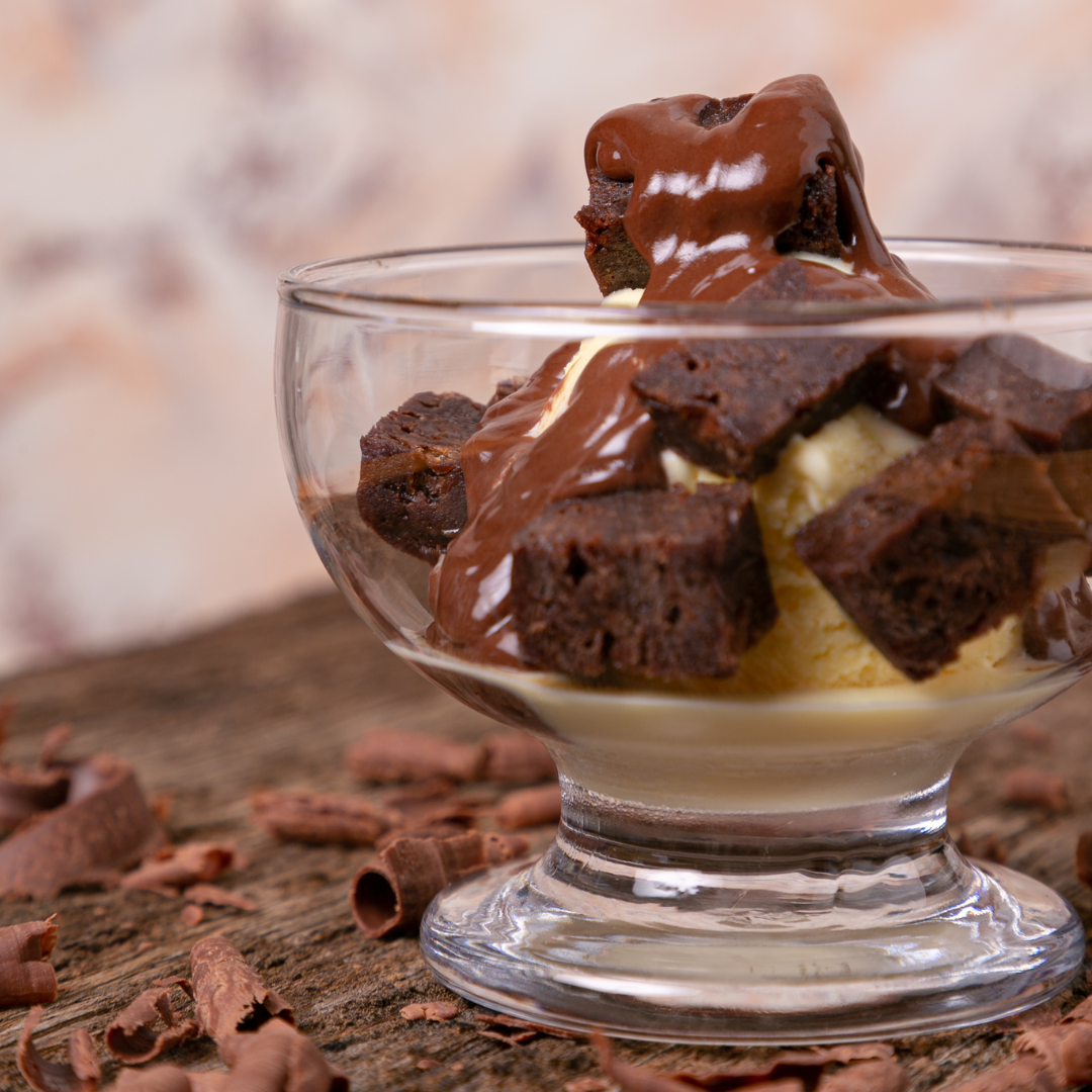 - Sorvete com cubos de brownie e ganache