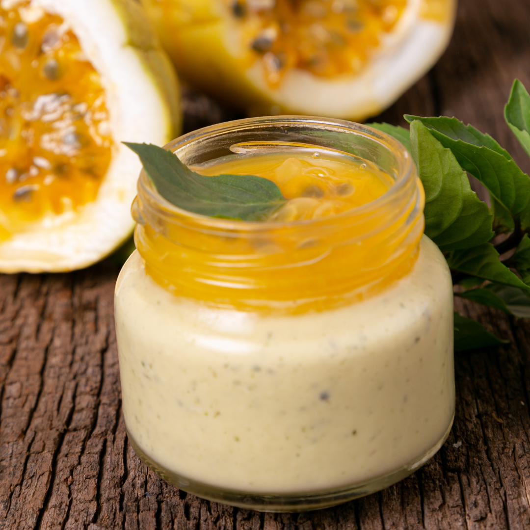 - Mousse de maracujá com manjericão