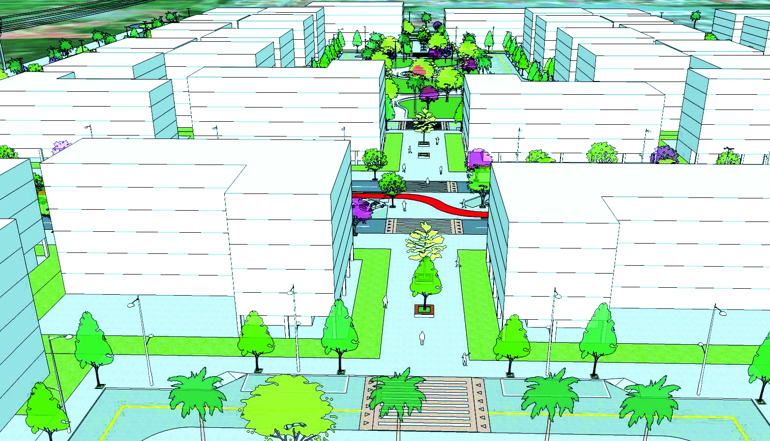 Os lotes de uso residencial vão ficar a menos de 200 metros de uma praça, ou seja, os moradores terão uma área pública a no máximo três minutos de caminhada. As estratégias de sustentabilidade ambiental incluem uma rede de ciclovias conectadas e a existência de calçadas largas e arborizadas, que privilegiam pedestres e ciclistas e desestimulam o uso de carros, reduzindo a poluição atmosférica e a emissão de gases de efeito estufa.