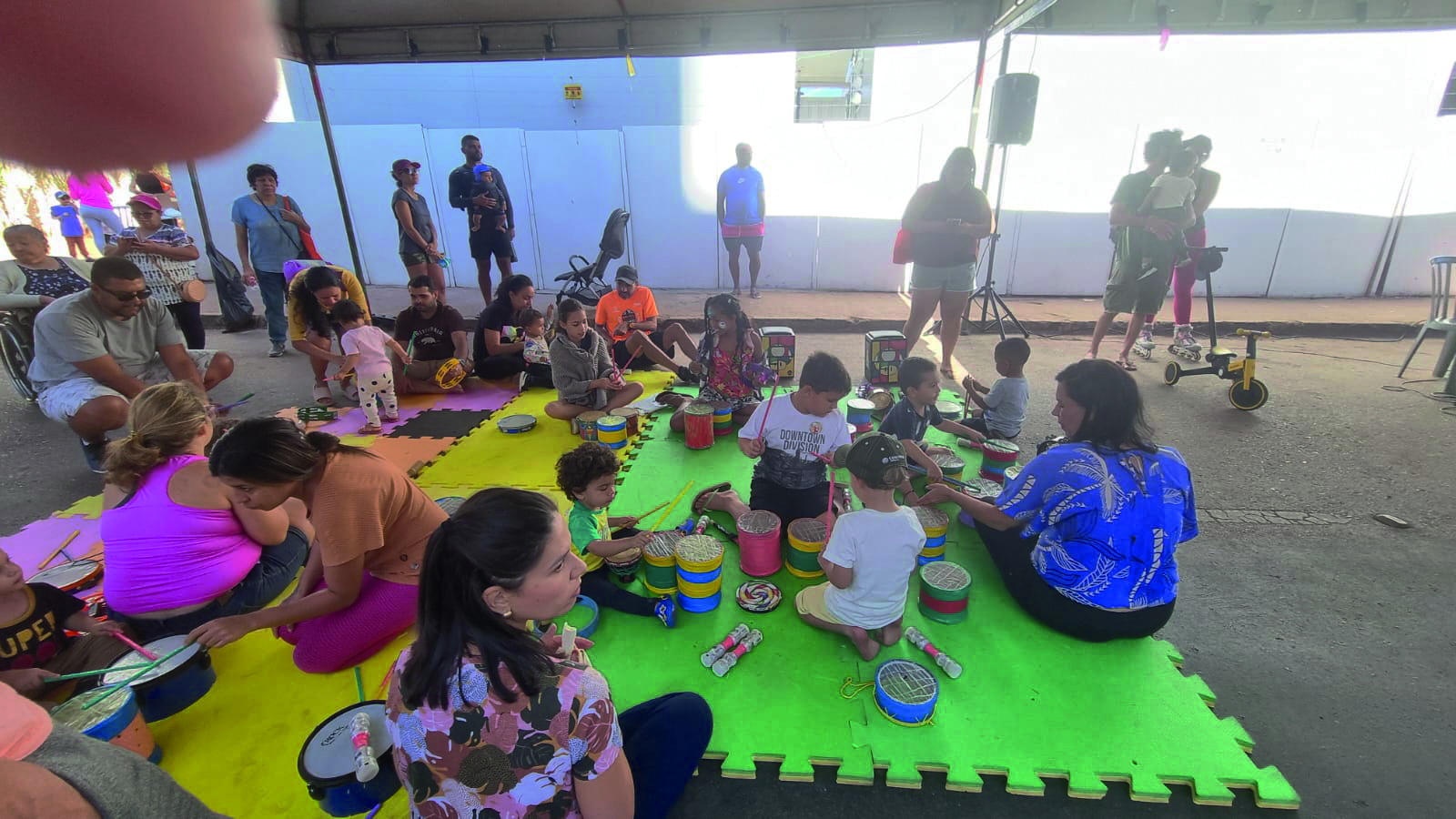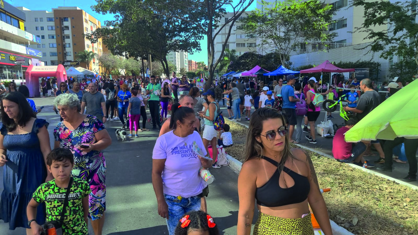 Enquanto isso, crianças deixam os celulares e vão passear de trenzinho reciclado, pular de alegria com a água gelada do mangueiraço do Corpo de Bombeiros – é uma verdadeira terapia ao ar livre.