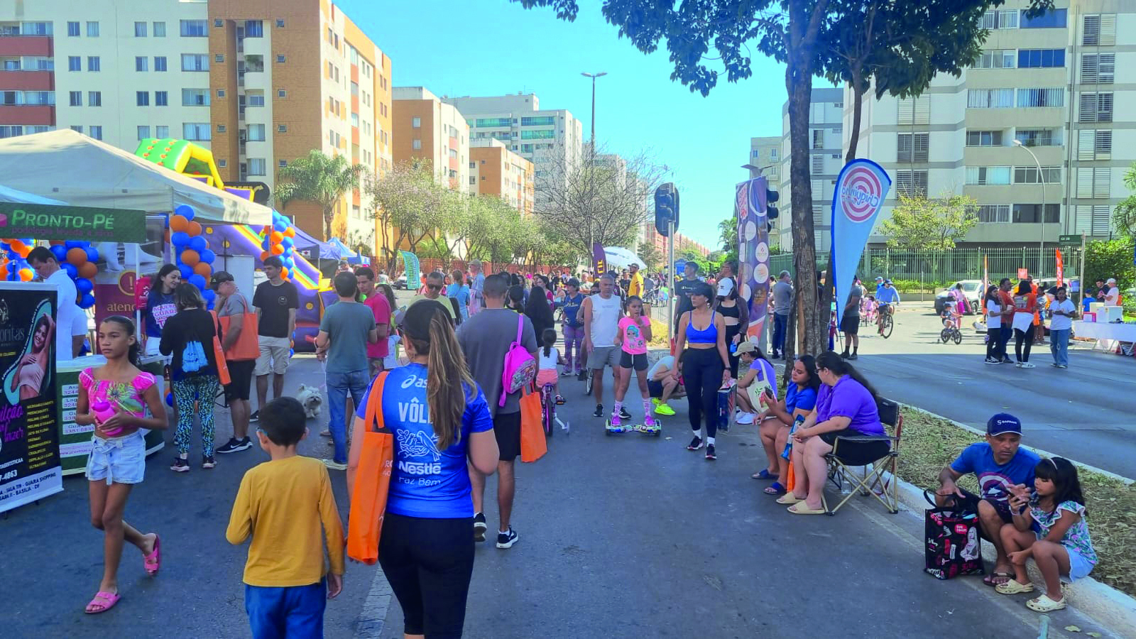 O que não falta na Rua de Lazer são as meninas do Kangoo, com muita dança, a academia Blue Fit, com aulões ao ar livre, e o rolê de patins é uma atração nova que caiu no gosto dos jovens. Vindo de outra região administrativa, o professor Wagner já formou até uma turma, e aos sábados pratica com seus pequenos alunos, às 16h, no estacionamento da Igreja Presbiteriana (Contato no fone 98216-9926). Outra atração é o Espaço Pet, que oferece até feira de adoção.