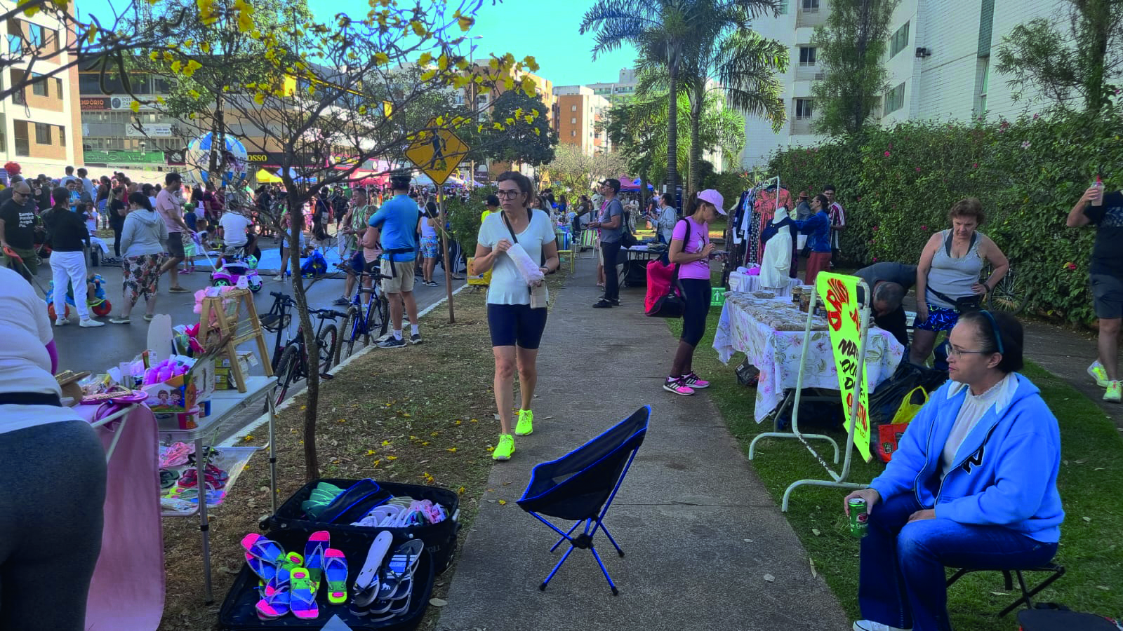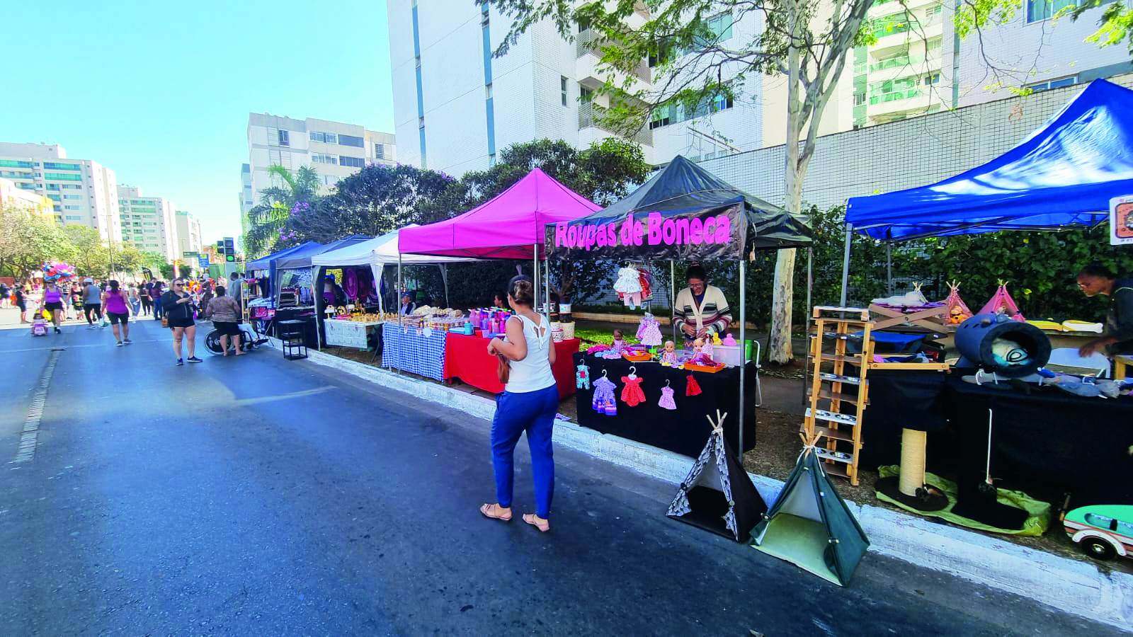 A feirinha organizada pela ExpoAme, é um bom exemplo de inteiração. Os expositores passam o dia inteiro juntos e misturados na exposição, venda e confraternização. A organizadora Kátia Celeste organiza um café da manhã coletivo, promove vaquinha para o almoço, e assim a Rua de Lazer vai fortalecendo seus vínculos com a comunidade. “São mulheres expositoras do Guará, que trabalham com artesanato. Temos a economia criativa, com doces e bolos à venda e os brechós, que vai para a área de sustentabilidade. Desenvolvemos um trabalho social e amenizamos a solidão das pessoas da terceira idade”, afirma Kátia.