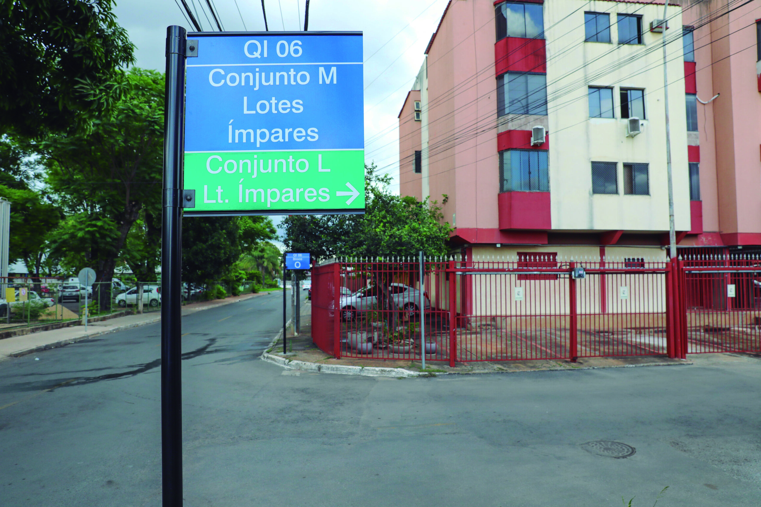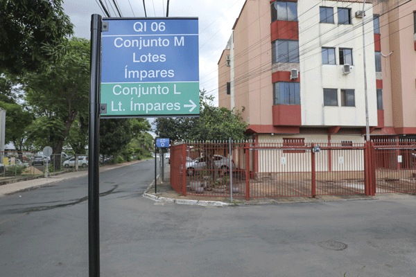 Com layout azul e maior dimensão em relação às placas antigas, as novas sinalizações informam a quadra, o conjunto e se o lote é par ou ímpar. A novidade foi elogiada pelo servidor público Adaelson Luiz da Silva, 54 anos. Morador da cidade há mais de três décadas, ele revela que é comum que amigos e familiares se percam ao procurarem sua residência.