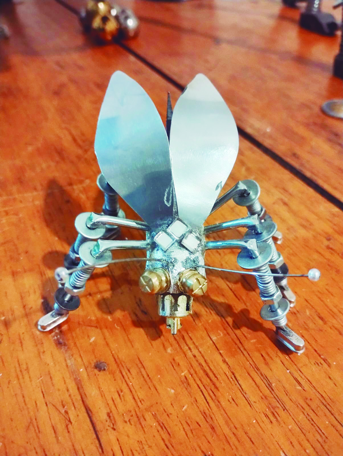 “Na natureza, tudo já tem um formato. Você só precisa dar vida a ele”, explica. Seu processo criativo é tão espontâneo quanto inovador. Ele não escolhe os materiais, mas os deixa “encontrá-lo”. Desde gravetos até lâmpadas queimadas, tudo pode ser transformado. Uma de suas criações mais impressionantes foi um escorpião com 80 cm de comprimento, feito a partir de lâmpadas recicladas.