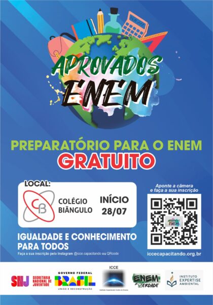 Jovens do Guará com idade entre 15 e 29 anos terão, a partir do final de julho, uma nova oportunidade para se prepararem de forma gratuita para o Exame Nacional do Ensino Médio (ENEM). Trata-se do Projeto Aprovados DF, um curso preparatório presencial que será realizado no turno noturno, com duração de quatro meses, no Colégio Biângulo, no Guará I.