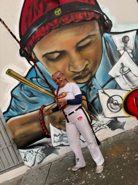As oficinas de capoeira são conduzidas por Lígia Vanessa, conhecida como Lola do Abadá Capoeira. Graduada pela escola Abadá e aluna do Mestrando Sorriso, Lola tem quase 20 anos de trajetória na capoeira, iniciada quando levou a filha de 6 anos para conhecer a prática. Além de capoeirista, Lola é pós-graduada em educação física escolar e inclusiva, artista, artesã, gestora, produtora cultural, arte-educadora ambiental especializada em arquitetura sustentável, permacultora, paisagista e presidenta do Conselho de Cultura do Guará. Sua experiência multidisciplinar reforça a proposta inclusiva e comunitária das oficinas, que acontecem todas as quintas-feiras, gratuitamente, atendendo em média 30 crianças e adolescentes do Guará.