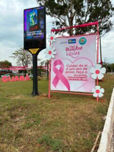 O monumento decorado segue em exibição ao longo do mês, chamando a atenção de quem entra ou sai da cidade e fortalecendo o compromisso da região com o bem-estar e a valorização das mulheres guaraenses.