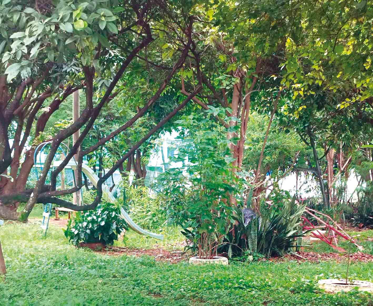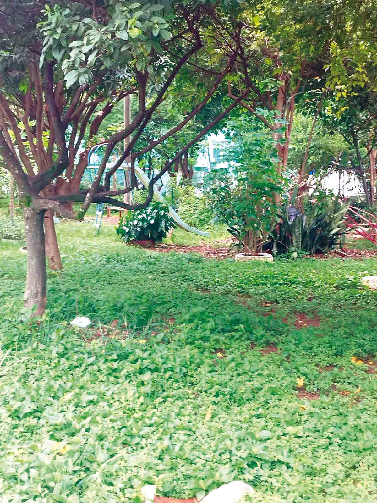 Já a terceira praça, localizada na QI 11, próxima ao conjunto D e aos blocos T e E, apresenta um cenário mais crítico. O espaço, que mais se assemelha a um bosque de mata densa, possui brinquedos de parquinho abandonados e enferrujados, além de vegetação que cresce de forma desordenada, sem registros de poda ou manutenção regular. Até o momento, não foi apresentada previsão específica de intervenções para o local.