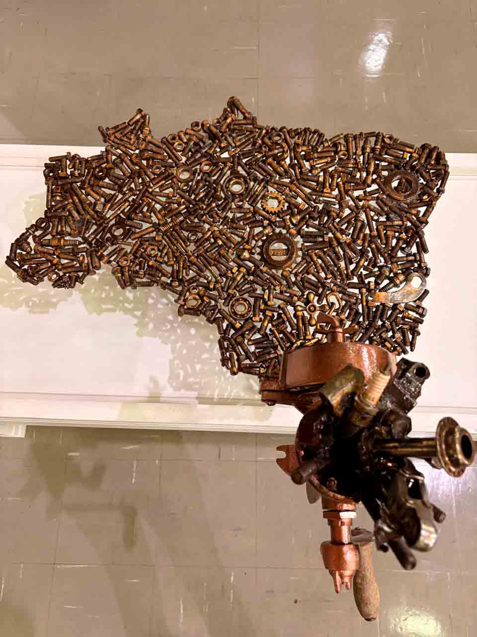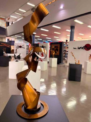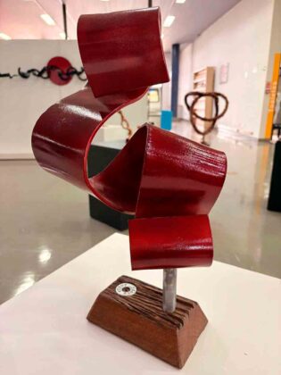 Na mostra, o público encontra esculturas que transformam materiais destinados ao descarte, como sucata automotiva, sobras da construção civil e peças metálicas diversas, em obras de arte. Ao trabalhar com esses elementos, o artista desenvolve uma produção em que o metal deixa de ser resíduo para assumir forma estética, memória e narrativa. O resultado é uma obra que dialoga com o espaço urbano e propõe reflexão sobre consumo, permanência e transformação.
